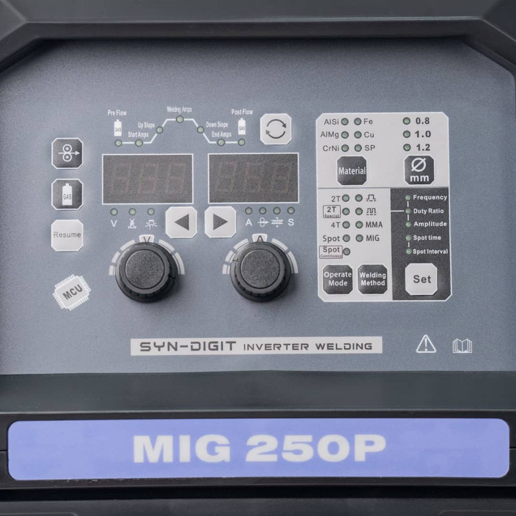 - مجهز به صفحه نمایش دیجیتالی نشانگر با قابلیت نمایش آمپر یا سرعت سیم یا ضخامت قطعه که به شما این امکان را میدهد با استفاده از ولوم آنها را تغییر بدهید